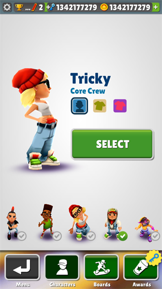 2、玩家扮演不同角色在地鐵奔跑收集貨幣道具,避免障礙保持生命值,盡可能長久存活。