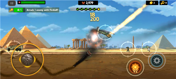 3、你需要不斷的襲擊上面的動(dòng)物、人類以及各種車輛、飛機(jī)等人類社會(huì)的文明產(chǎn)物,或者獲取炸彈、興奮劑等獎(jiǎng)勵(lì)加強(qiáng)戰(zhàn)斗力,并獲得擊殺經(jīng)驗(yàn)值并升級。