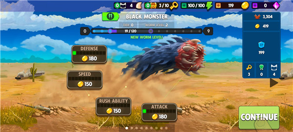 6、通過對蠕蟲的各個(gè)部位進(jìn)行升級,可以獲得更加強(qiáng)大的能力;