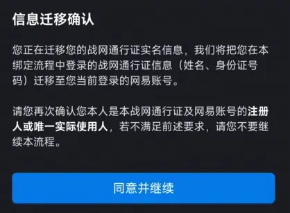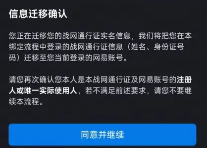 3.開始實名信息遷移,閱讀綁定流程及賬號綁定協(xié)議,點擊同意并繼續(xù)
