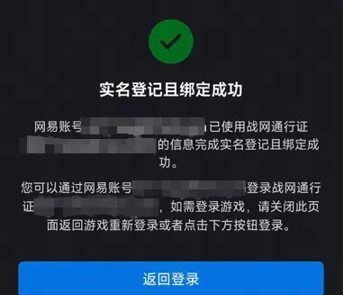 8.網(wǎng)易賬號已使用戰(zhàn)網(wǎng)通行證的信息完成實名登記且綁定成功,點擊返回登錄回到戰(zhàn)網(wǎng)通行證登錄頁面,使用網(wǎng)易賬號登錄即可。