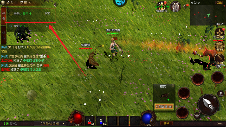 2、進(jìn)入戰(zhàn)斗地圖后,系統(tǒng)將自動(dòng)協(xié)助你進(jìn)行打怪,無(wú)需頻繁操作,只需等待擊殺數(shù)量達(dá)標(biāo),即可輕松完成任務(wù)目標(biāo)。