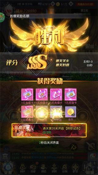3、零氪福利:Boss戰(zhàn)掉落代金券,全民共享10億代金券獎(jiǎng)勵(lì);