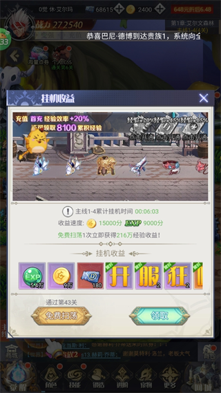 7、當(dāng)然最后就是不要忘了領(lǐng)取掛機(jī)獎(jiǎng)勵(lì)。