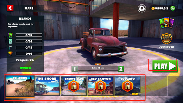1、打開在本站下載的脫離道路無限金幣版游戲,進(jìn)入游戲首頁,選擇你想要的游戲場景,點擊開始游戲;