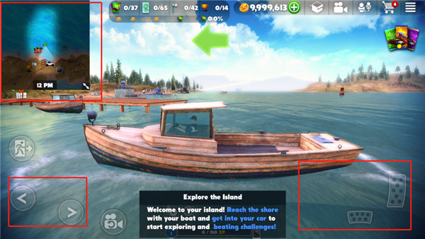 4、然后根據(jù)藍(lán)色方向標(biāo)將船開至岸邊,然后上車;