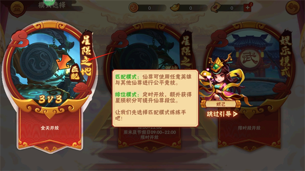 2、選擇好角色后會(huì)獲得師徒三兄弟,點(diǎn)擊競(jìng)技模式選擇3v3。