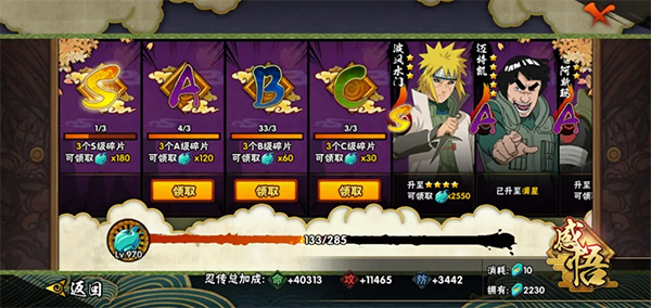 在收集忍者碎片的過程中,忍傳系統(tǒng)也可以幫我們提升戰(zhàn)力。如下圖所示: