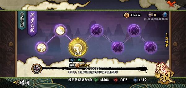 而且在角色達到一定等級,解鎖修羅副本后,還可獲得修羅天賦點數(shù),這同樣需要消耗銅幣來提升角色屬性。