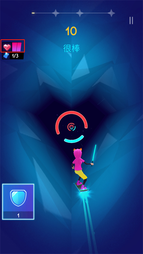 4、左上方的是血條,失誤一次會(huì)消耗一格血條,血條見底游戲就會(huì)結(jié)束;