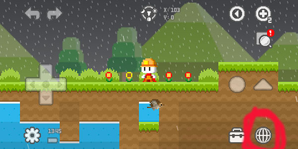 1、一號玩家進(jìn)入游戲后,先點(diǎn)擊右下角的【地球圖標(biāo)】。