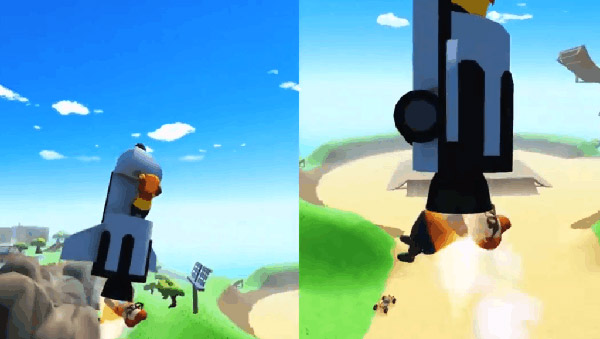 5、除了送快遞的玩法,作為一款 沙盒游戲 ,玩家在游戲內還能找到各種稀奇古怪的東西,例如航天飛機,把好友綁上去讓他欣賞一下美麗的太陽系景色。