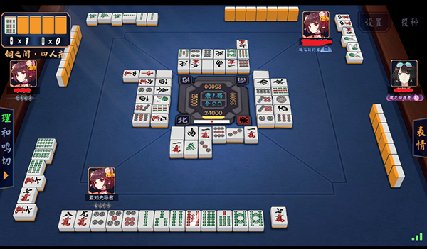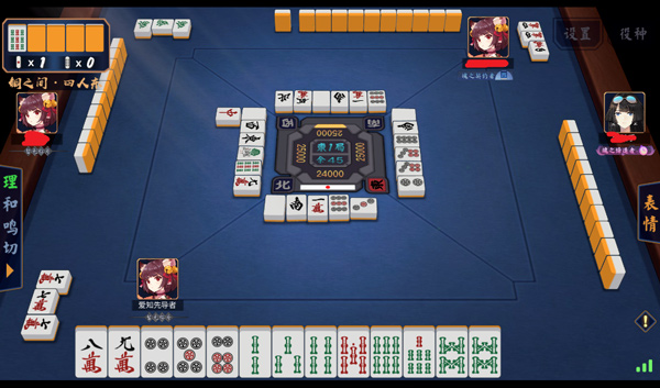 3、對戰(zhàn)畫面清晰直觀,牌面設(shè)計采用日本麻將傳統(tǒng)字體風(fēng)格。點擊要打出的牌即可切牌,遇到可以“吃”“碰”“杠”的情況時,點擊對應(yīng)提示完成操作。需要注意的是,遵循立直麻將的規(guī)則,必須有“役”才能胡牌,規(guī)則統(tǒng)一又充滿挑戰(zhàn)性。
