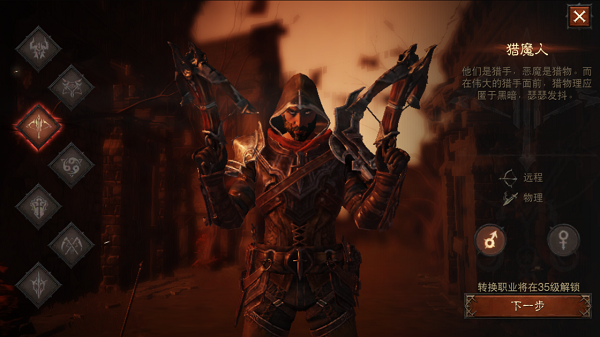 獵魔人是無情的俠義之士,會從遠處發(fā)起進攻;他們是經(jīng)過訓(xùn)練的惡魔獵人,卻身負悲慘的過去——他們的家人被烈焰地獄的惡魔所害。獵魔人用錘煉的戒律積蓄能量,一往無前地發(fā)起進攻,直到他們的獵物任由自己擺布。
