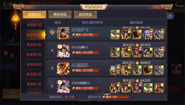 點(diǎn)擊「通關(guān)排行」可以查看到各個(gè)難度、各個(gè)關(guān)卡的玩家通關(guān)陣容。選擇適合自己的陣容借鑒也能夠更好地過(guò)關(guān)。