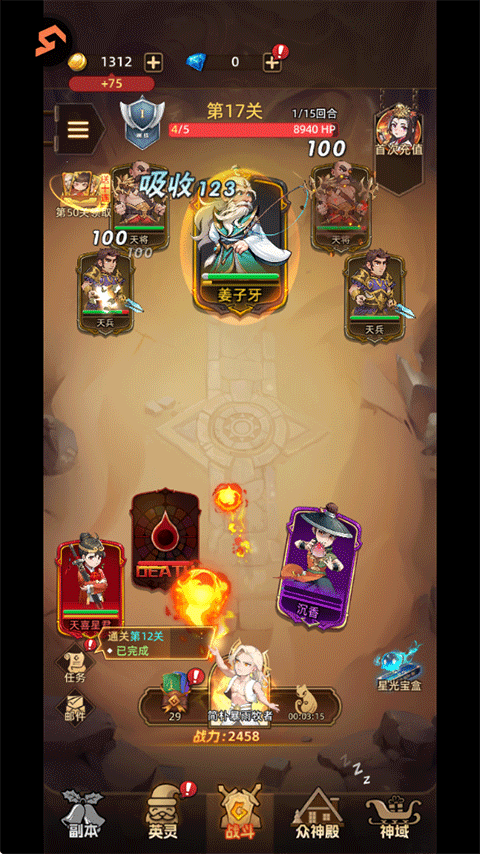 4、豐富的獎勵機制:通過不斷挑戰(zhàn)和通關,玩家可以獲得符箓等獎勵,用于召喚新角色或增強已有角色的實力。
