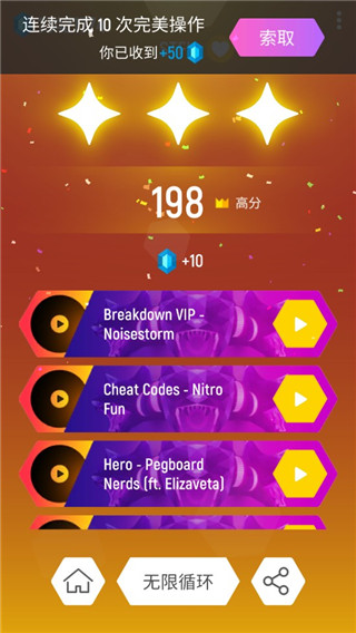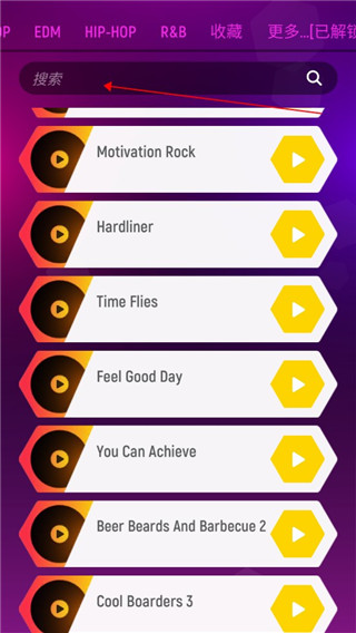 1、下載進入節(jié)奏彈球游戲,可以看到游戲中擁有大量的歌曲;