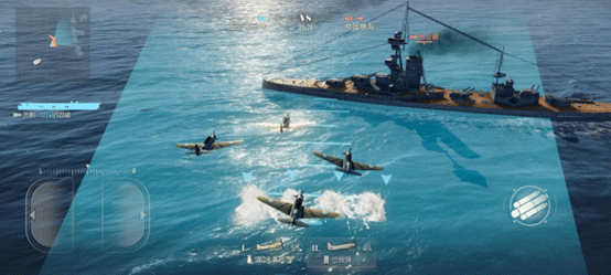 不直接操縱艦體,而是指揮輪流出擊的艦載機編隊。魚雷機投雷(傷害高、較分散、易躲避,適合打擊大型笨重目標(biāo))。轟炸機投彈(范圍覆蓋、無法閃避、傷害平均,適合打擊高機動驅(qū)逐艦)。