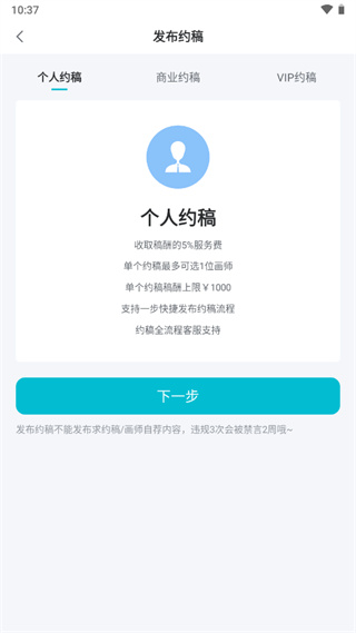 3、選擇約稿種類,點擊下一步;