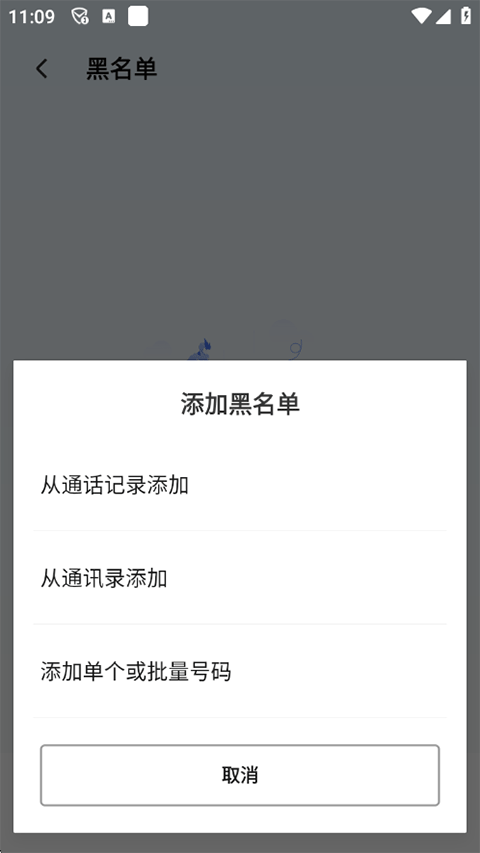 5、添加黑名單,可以從通話記錄、通訊錄、添加單個/批量號碼。