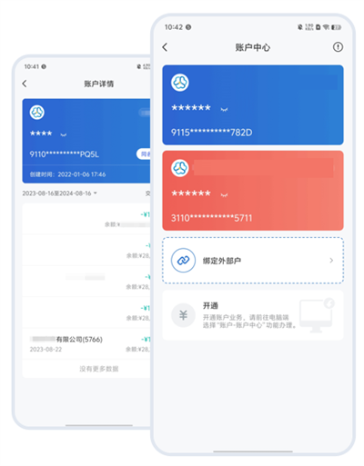 【賬戶中心】可查詢企業(yè)在平臺開設(shè)的類賬戶余額/交易記錄和明細(xì);